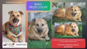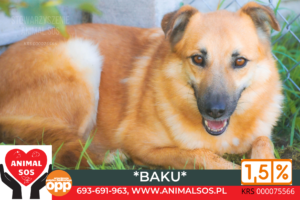 Baku to wyjątkowy psiak, który po trudnym początku w życiu zasługuje na bezpieczny i kochający dom. Choć wychowany w dzikich warunkach, teraz, z cierpliwością i miłością, może stać się wiernym towarzyszem.