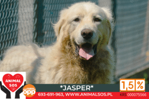Jasper to duży, majestatyczny pies w typie owczarka podhalańskiego, urodzony w 2022 roku. Waży około 41 kg i robi ogromne wrażenie swoją posturą oraz szlachetnym wyglądem. Choć wygląda jak prawdziwy strażnik, w głębi duszy jest wrażliwym psem, który potrzebuje czasu, by zaufać człowiekowi.