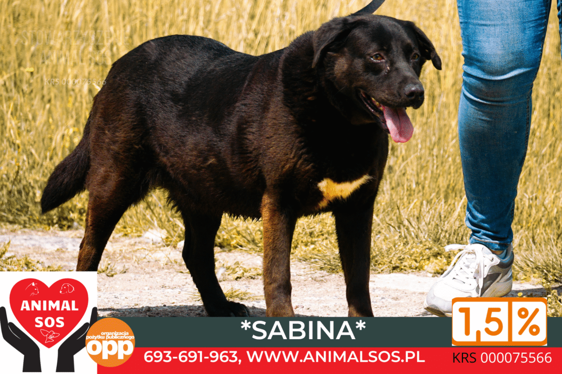 Sabina szuka opiekuna, który da jej to, czego nigdy nie miała – domu, gdzie będzie członkiem rodziny, a nie tylko kolejnym psem. W zamian ofiaruje swoje serce, bezwarunkową miłość i radość, która każdego dnia rozjaśni Twoje życie.
