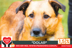 Dolar to wyjątkowy psiak, który urodził się około 2013 roku. Jego życie nie było łatwe – lata spędzone w samotności i w trudnych warunkach sprawiły, że nauczył się bardziej ufać sobie niż ludziom. Był psem, który nigdy nie zaznał ciepła prawdziwego domu. Żył na uboczu, przywiązany do swojego małego świata, w którym nie miał ani troski, ani miłości. Dlatego dzisiaj jest mocno wycofany – nie szuka kontaktu na siłę, a nowe sytuacje budzą w nim ostrożność i rezerwę.