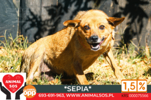 Sepia to niewielka, ruda suczka, która w swoim życiu zdążyła już doświadczyć zbyt wiele trudnych chwil. Początkowo bardzo wystraszona, dziś – dzięki cierpliwości i trosce wolontariuszy – powoli zaczyna wierzyć w ludzi i otwierać swoje serce.