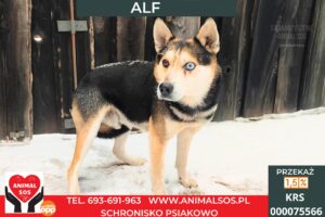Alf jest otwarty na człowieka, lubi kontakt, bliskość i spokojne towarzystwo. Jest psem, który nie narzuca się, ale chętnie będzie obok – na spacerze, na kanapie czy podczas zwykłych domowych chwil. Akceptuje inne psy, dlatego może zamieszkać w domu, w którym są już czworonożni przyjaciele.