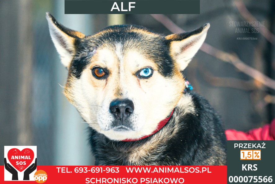 Alf to około 7-letni, niezwykle łagodny i przyjazny pies, ważący około 15 kg. To taki psiak, przy którym od razu robi się spokojniej – delikatny, kontaktowy, bardzo „fajny” w codziennym obyciu.