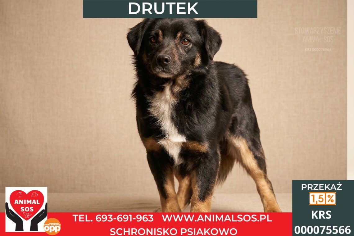 Szukamy dla Drutka kochającego domu, w którym poczuje się bezpieczny i ważny. To pies, który za odrobinę uwagi odwdzięczy się bezgranicznym przywiązaniem i codzienną porcją pozytywnej energii.