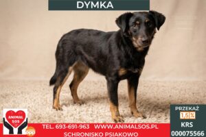 Nowe miejsce, nieznane zapachy i obcy ludzie to dla niej ogromna zmiana, dlatego w pierwszym kontakcie bywa jeszcze nieśmiała i wycofana. Jednak pod tą kruchą powłoką kryje się piesek o gołębim sercu – Dymka jest całkowicie łagodna, spokojna i pozbawiona cienia agresji. Potrzebuje jedynie kogoś, kto weźmie ją pod swoje skrzydła i powie: „Już jesteś bezpieczna”.