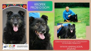 Kropek (ur. ok. 2017, waga ok. 12 kg) wciąż uczy się chodzić na smyczy. Każdy spacer to dla niego nowe wyzwanie, ale też mały krok w stronę normalności. Idealnym domem dla niego będzie spokojne miejsce, najlepiej z ogrodem, gdzie mógłby poczuć się swobodnie, a jednocześnie mieć swoje bezpieczne schronienie. Ten wyjątkowy pies czeka na kogoś, kto da mu czas, cierpliwość i serce. W zamian Kropek podaruje coś, czego nie da się kupić – bezwarunkową miłość i wdzięczność.ziemi?