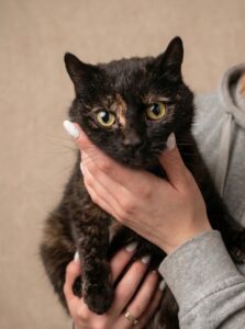 To młoda, około roczna kotka, która łączy w sobie dziecięcą ciekawość świata z rodzącą się kocią elegancją. Szylkretki często nazywane są kotami „z charakterem” – są bystre, inteligentne i potrafią budować niezwykle silne więzi ze swoimi opiekunami. Dioda, jak na swoją nazwę przystało, z pewnością rozświetli każdy Twój wieczór swoją obecnością.