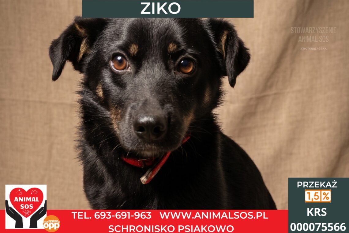 Ziko trafił pod naszą opiekę całkiem niedawno, dlatego wciąż jeszcze czuje się ciut wystraszony nową sytuacją i schroniskowym zgiełkiem. Nie ma w nim jednak ani krzty agresji – jest jedynie nieśmiałość i ogromne pragnienie spokoju. To typ psa, który woli wycofać się i poczekać na gest ze strony człowieka, niż narzucać się swoją obecnością.